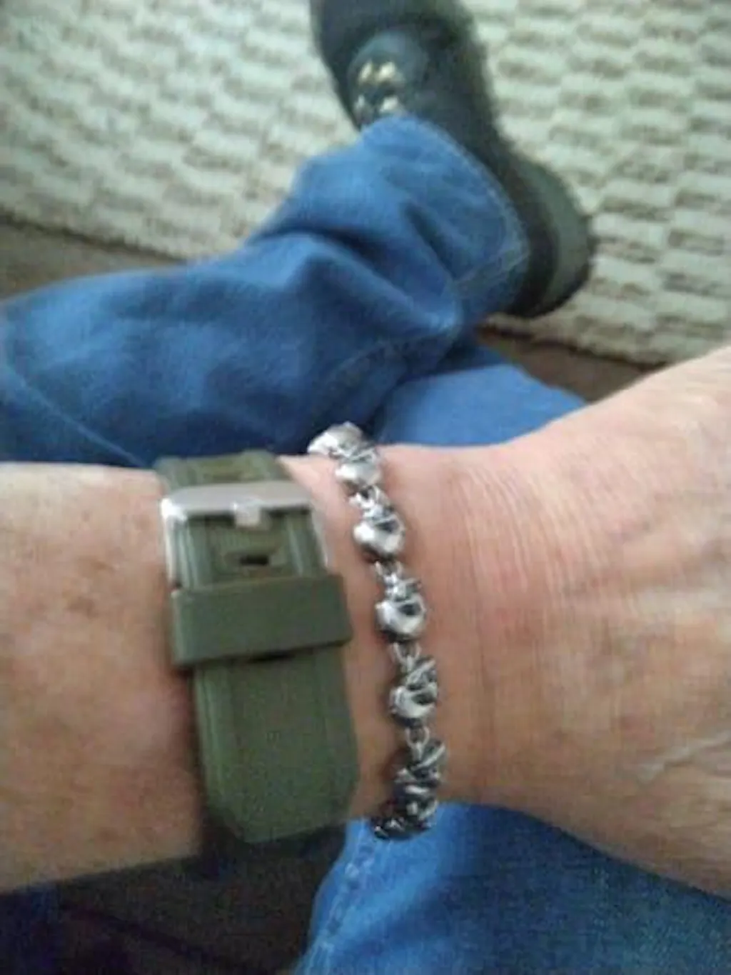 This superb design has skulls linked together to create a beautiful and detailed piece. It's an excellent alternative for those who want a little something different from the usual jewelry pieces out there. Easily stack it with other bracelets or wear it alone - this will DEFINITELY get you noticed!